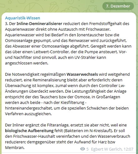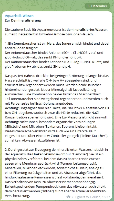 Aquaristik-Wissen aus meinem Telegram-Kanal 2025 -Demineralisierung