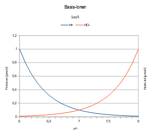 1/10ˆpH [gr/l] > pH = -lg[Kz(H+)] dem pHO-Wert für die Hydroxid-Konzentration Kz(HO-) = 17/10ˆpHO [gr/l] > pHO = -lg[Kz(HO-)] Die