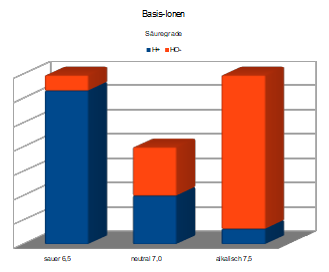 werden. ![]() ![]() Säuregrad Ein (Un-)Gleichgewicht der Basis-Ionen - aus welchen Gründen auch immer - ist die Ursache für das, was landläufig (wieder nicht ganz korrekt) als Säuregrad bezeichnet wird. In dem bisher angenommenen Fall reinen Wassers sind HO- und p+ in identischer Ladungs-Konzentration, das Wasser ist neutral, hat keine besonderen Eigenschaften. Wieder einmal vereinfacht: Die Ionen-Konzentrationen beschreiben wir mit zwei dimensionslosen Zahlen, dem