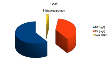 diffundieren die Moleküle aus dem Wasser in die Luft. Diese Gleichgewichts-Grenzen sind für N2: 14,2 [mg/l], CO2: 0,51 [mg/l], O2: 9,1 [mg/l] ![]() Das Wasser kann temporär mehr oder auch weniger dieser Mengen