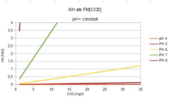 mittels CO2-Zufuhr ist ab pH=8 nur schwer möglich, KH steigt dann