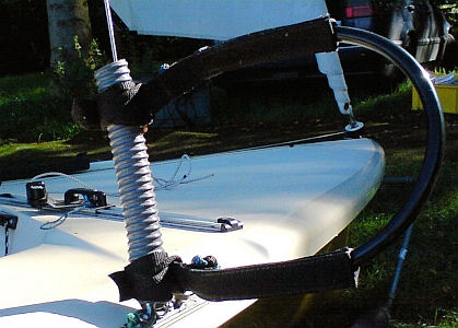 3.9 Äußerst praktisch ist die Bolzenschlinge zur Schnellverstellung der Fockschlitten: