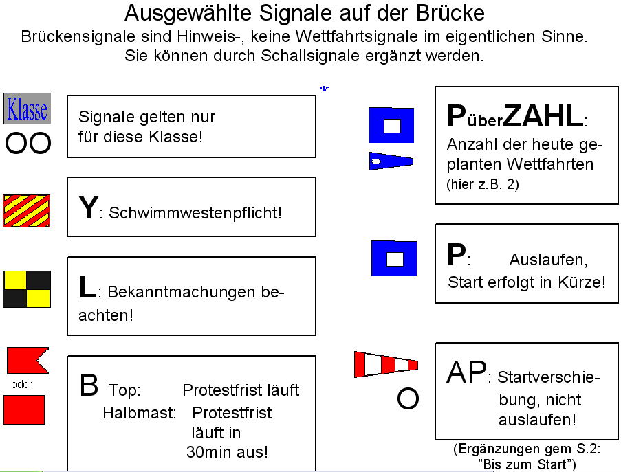 äußerst empfehlenswert sein, sich die wichtigsten Signale mittels Folie auf den Bootsrumpf